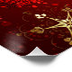 Roter Weihnachtsgebirge mit goldenen und weißen Schneeflocken. Goldene Schneeflocken.