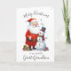 Fröhlich und hell, Santa, für Urenkel. Frohe Weihnachtskarte. Aquarellbaum, Kiefernbaum, traditionelle Karte. Bitte personalisieren Sie es mit Ihren Daten.