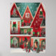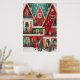 Ein Haus in roter Farbe, das zu Weihnachten dekoriert wurde. Das ist eine künstlerische KI.