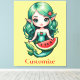 Niedliche, gegrillte Meerjungfrau, die Wassermelone hält, um sie zu personalisieren