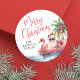Feiern Sie die Saison mit diesem festlichen und spielerischen Rundaufkleber-Design, das sich perfekt eignet, um Ihren Feierlichkeiten eine tropische Touch hinzuzufügen. Das Kunstwerk besticht durch ein entspanntes Santa Claus in einer Sonnenbrille, das in einem rosa Flamingo-Floaty untergebracht ist und von Meereswellen und Strandbäumen umgeben ist. Das Ganze bietet eine lustige Drehung zu einem warmen Weihnachtsfest. "Frohe Weihnachten" erscheint oben in einer Mischung aus schwarzen und roten Schriftart für einen kühnen, fröhlichen Look. Der Familienname wird auf der unteren links Seite platziert, um die Typografie für ein personalisiertes Detail zu koordinieren. Alle Texte, Schriftart und Farben können an Ihre Veranstaltung angepasst werden. Ideal, um Geschenktaschen zu versiegeln, Leckereien zu schmücken oder um Ihren Weihnachtsfeiern eine tropische Touch hinzuzufügen.
