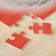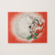 Vintage Illustration Fröhliches Weihnachtskonzept mit einem fröhlichen Weihnachtsmann. Das Alte St. Nick hat einen großen, flauschigen weißen Bart und trägt einen traditionellen Furry, der mit heiligen Blätter und Beeren dekoriert ist. Sein lachendes Gesicht ist auf einem hellen roten Hintergrund dargestellt. Ein lustiges 50er Retro Kitschy Gefühl.