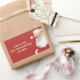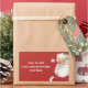 Einfache Anpassung von Aufklebern! Fügen Sie einfach Ihre eigene Urlaubsnachricht hinzu. Vintage Illustration Weihnachtsfeierdesign mit einem fröhlichen, glücklichen Weihnachtslieder, als ob er ein Geheimnis hätte. Er trägt einen Hut mit heiligen Blätter.