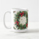 Diese Tasse hat eine Weihnachtsatmosphäre mit einem großen Kranz.