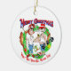 Heilige Weihnachten ist eine lustige Illustration eines älteren Anglers mit Rottrommelfisch auf ihren stehenden Linien. Beide stehend vor einem Weihnachtskranz an der Palmenfront mit einem fröhlichen Weihnachtskopf und Grundtext", könnte der Fisch bei Ihnen sein.