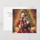 Eine personalisierte Weihnachtskarte mit einem Hund, der auf dem Schoß von Santa sitzt und ihm sagt, was seine Weihnachtswünsche sind.