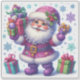 Ein fröhlicher Weihnachtsmann in einem fröhlichen violetten Outfit hält fröhlich bunte Geschenke bereit. Umgeben von festlichen Schneeflocken und Feriendekorationen verkörpert er den Geist der Weihnachtszeit und strahlt Wärme und Fröhlichkeit während der Ferienzeit aus.