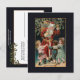 Jolly rot-robed Vintager Weihnachtsmann hält seinen Sack von Geschenken und heilig mit drei glücklichen Kindern tanzen um ihn herum mit mistletoe Overhead und goldenen Highlights. Die Hintergrundfarbe ist anpassbar. Zurück bietet einzigartige, benutzerdefinierte, ergänzende Grafiken mit bearbeitbaren Textfeldern.