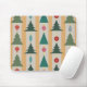 Dieses Mauspad hat ein modernes Design von Weihnachtsbäumen und Ziergegenständen, die auf einem goldfarbenen und silberfarbenen Garten aufgereiht sind.