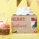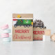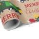 Eine niedliche Illustration eines weihnachtlich recycelnd Müllwagens mit einer Weihnachtsmannmütze und in Weihnachtsbeleuchtung mit den Worten "Frohe Weihnachten" und Kraftsbraun Papier Blick Hintergrund. Ein ideales Weihnachtsverpackungspapier für Groß oder Klein, Mädchen oder Jungen.