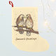 Strumpf zeigt eine originelle Marker-Illustration eines roten Schwanzfalkenpaares auf einem Zweig im Schnee, darunter in einem lustigen Schriftart die GREETINGS von SEASON. Ideal für Weihnachten!
