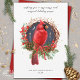 Weihnachts Roter Kardinal Weihnachten Solstice Weihnachtskarte mit weißem Hintergrund und roten Rücken. Besonders hervorzuheben ist diese Urlaubssaison mit diesem wunderschönen Aquarelldesign, das einen Rot-Kardinal-Vogel gegen einen dunklen Nachthimmel mit einem Halbmond und Goldstern, Zweikranz, rote Heilige Beeren, Kiefernzangen, Grünpflanzen, Kerzen mit goldener Flamme und mit rotem Bogen fertig macht, ob Sie Weihnachten, Weihnachten oder die Wintersonnenwende feiern, diese Karte ist perfekt für Paaraner und alle Lieben die Magie der Wintersaison! Text bereit, um mit Ihren Informationen anzupassen.