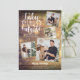 Ein elegantes rustikales 4-Foto Collage Urlaubsprojekt für Sie, um mit Ihren Lieblings-Fotos gerahmt in Gold, Nachricht, Namen und Jahr auf einem rustikalen Holzhintergrund zu personalisieren. Auf der Rückseite befinden sich abfallende Schneeflocken auf einem passenden Holzpaneelhintergrund. Entwickelt von Thisisnotme©