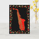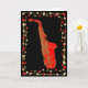 Festliche Weihnachtsfeiertage Saxophon-Design mit einem stilvollen rot-goldgelben Alto-Saxophon gerahmt durch Saiten von Weihnachtsbeleuchtung.