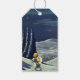 Einfach zu personalisieren Weihnachtsgeschenktafeln, um eine individuelle Nachricht zu erstellen. Vintage Darstellung religiöser Weihnachtsbilder mit einem Engel, der einen hellen, leuchtenden Stern hält und nachts durch den Schnee geht. Diese schneebedeckte Landschaft umfasst sanfte Hügel, Bäume und ein Dorf im Mondschein. Ein Christliches Religionsdesign mit einem Engelkirsch, der in die Stadt kommt.