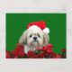 Kitz und weißer Hund Shih Tzu in einer Weihnachtsmannmütze und in den Poinsettias verfolgen Liebhaber-Foto Weihnachtspostkarte