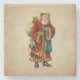 Ein Untersetzer aus Stein mit einem Vintagen Weihnachtsmann aus der Alten Welt. Klassische alte Welt santa, mit seinem berühmten roten Mantel und einer Tasche voller Spielzeuge. Dieser altmodische Weihnachtsmann ist schlank und hält einen Gehstock, um durch das Land zu reisen und allen Mädchen und Jungen Spielzeuge zu schenken. Alter Pergamentstil.