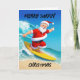 Der Weihnachtsmann surft auf dieser Weihnachtskarte auf einer Welle des Feiertagsstils. Er hat dieses Jahr den Schlitten für ein Surfbrett gegraben und während er Wellen fängt, verbreitet er Lachen, Spaß und gute Schwingungen.