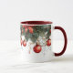 Diese Weihnachtsfeier ist eine wunderschöne Verkörperung des Urlaubsstils. Es zeigt rote Weihnachtsdekorationen auf einem Weihnachtsbaumzweig. Frohe Weihnachten und ein glückliches neues Jahr!