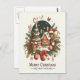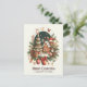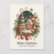 Eine festliche Postkarte mit lebhaften Farben, fröhlichen Dekorationen und fröhlichen Grüßen für Weihnachten und Neujahr.