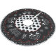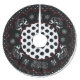 Stilvolle Weihnachtsbaumrock mit Rentieren und Schneeflocken. Scalloped Trimmdesign an der Innenseite und polka Punkt Rand in schwarz, grau und weiß.