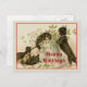 Vintage Dackel Hunde Weihnachtsdesign, mit schwarzen Hunden, spielen mit einer Vase mit Misteloe und Heilige Beere.