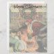 Vintage Abbildung Viktorianisch Frohe Weihnachtsbilder mit einem fröhlichen Weihnachtsmann, der zwei schlafenden Kindern am Heiligabend am Kamin Spielzeuge liefert. Das kleine Mädchen bekommt eine Puppe. Ein heiliger verlasse Kranz auf dem Mantel über dem Feuer.