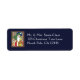 Vintage Abbildung Viktorianischer Stil Frohe Weihnachtsfeiertag Weihnachtsbild mit St. Nikolaus mit einem Weihnachtsbaum und Streicheln eines Hirsches im Wald, ein Vollmond im Nachthimmel. Ein Jolly Santa trägt einen Sack voller Spielzeuge und Puppen auf seinem Rücken, der an Heiligabend fertig gestellt ist. Glückliche Feiertage und Grüße der Saison!