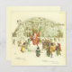 Vintager Vater Weihnachtskarte Weihnachtsmann sitzt auf einem großen Schneeball im Wald mit vielen Kindern um ihn herum, mit Vortext The Coming of Father Christmas, können Sie alle Texte auf der Rückseite ändern oder löschen, flache Weihnachtskarte, Höflichkeit von Europeana