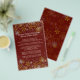Weihnachtsmenü rot und gold. Dunkelrot mit goldenen Schneeflocken und abfallenden Schneeflocken an der oberen und unteren Kante. Geben Sie den Familiennamen und das Datum des Jahres an der Spitze ein, und listen Sie dann alle für eine Feier vorgesehenen Speisen auf. Geben Sie den Namen des Kochs / Koch für jedes Element für eine personalisiertere und lustigere Menüliste ein. Das Menü ist für diese 5x8 Größe gemacht. Die Rückseite ist mit Schneeflocken geschmückt.