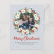 Eine wunderschöne Weihnachtskreidekarte mit Blumenkranz kann mit Ihrem eigenen Bild und Ihrer eigenen Botschaft personalisiert werden, die eine schöne handgeschriebene Typografie und einen verschneiten Hintergrund aufweist. © Mini Moi Prints