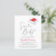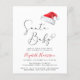 Eine niedliche, minimale Budget-freundliche Weihnachtszeit Baby Sprinkle Einladung mit "Santa Baby" in einem eleganten Drehbuch mit einem Herzschlag, einer Aquarellillustrierung des roten Hutes des Weihnachtsmannes und einer Einladung zu einem fröhlichen kleinen Babysprinkle. Personalisieren Sie den Namen der Mutter in einem stilvollen roten Drehbuch und die Duschdetails in einfachen modernen Typografie.