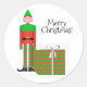 Frohe Weihnachten! Ein runder Aufkleber mit einem Weihnachtself, Zickzack. Passen Sie den Aufkleber mit Ihrem eigenen Text unter anderen Optionen an.