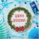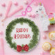 Grüner Urlaubskranz mit kariertem Büffel in Rot und Schwarz auf Weiß. Die Hintergrundfarbe kann geändert werden. Text ist bearbeitbar.