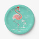 Inspiriertes Design aus der Mitte des Jahrhunderts mit einem festlich rosa Flamingo mit roter Weihnachtsmannmütze, Stars und Palmen, die mit Baubles Set vor einem Aquahintergrund verziert sind. Ein individuell anpassbares Design für Sie, um mit Ihrem eigenen Text, Bildern und Ideen zu personalisieren. Ein originelles digitales Kunstbild von Quirky Chic.