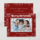 Ein klassischer, roter Hintergrund mit Imitaten silberner Glitzer, funkelnden Sternen. Personalisieren und fügen Sie Ihr eigenes Foto, Name und ein Jahr. Mit dem Text: Frohe Weihnachten. Ein Fenster überlagert Ihr Foto. Fügen Sie Ihren Text auf der Rückseite hinzu: