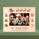 Ein moderner, maßgeschneiderter Laserrahmen, um zu Weihnachten Ihr Lieblingsfamiliengefühl zu zeigen, mit Bildern vom Santa Fliegen in seinem Schlitten mit Rentieren, einem Weihnachtsbaum, Geschenken und Bogen, Bonbons und einer Weihnachtsmannmütze. Personalisieren Sie mit Ihrem Nachnamen und einer anderen Textzeile in einfacher Typografie.