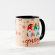 Fügen Sie eine lustige, festliche Touch zu den Jahresende- und Weihnachtsfeiern mit dieser skurrilen Tasse hinzu, die farbenfroh gekleidete Grinsenzwerge mit spitzen Hüten und Schneeflocken auf pfirsichfarbenem Hintergrund zeigt und einen leichtsinnig hitzigen Wunsch, "gnome für die Feiertage" zu sein. Umkehrung zeigt identisches Design. Passen Sie Ihre Wünsche an. Design © W.H. Sim. Weitere Informationen unter zazzle.com/expressionsoccasions