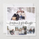 Elegante Kalligrafie Minimalistisch Schwarz und Weiß 4 Foto Collage "Die Grüße der Saison" Script Weihnachtsgrüße Karte. Diese festliche, mimimalistische, whimsical vier (4) Foto-Urlaubskarte Vorlage verfügt über eine hübsche Foto-Collage und sagt "Die Grüße der Jahreszeit". Der Text ist in einem wunderschönen handgeschriebenen kursiven, Wirblen Swash-Schwanz Schriftart Typ geschrieben. Auf der Rückseite mit einer Grußvorlage mit einem kleinen Herzdoodle auf weiß und einer horizontalen Bildvorlage. Hübsche Grußkarte für Ihre Familie und Freunde in der Weihnachtszeit.