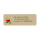 Ein weihnachtliches Adressetikett mit einem stilisierten roten Kardinal, der auf einem Hengst mit Kiefernästen und goldenen Wirbel auf dem verlassen Rand Set auf einem Pergament-Hintergrund sitzt. Der Text ist in einem Template-Formular, sodass es einfach zu ändern und es zu Ihrem eigenen machen.