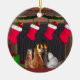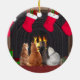 Vier Kätzchen versammeln sich um den Kamin mit ausgestopften Strümpfen und Geschenken, die für den zauberhaften Weihnachtskatzenliebhaber im Urlaubsszelt gewartet sind
