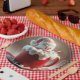 Weihnachts-Marshmallow-Schneemann in heißer Schoko Pappteller