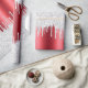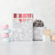 Diese glänzende Geschenkverpackung hat eine metallische Imitat-Folie mit festem roten Sockel, wobei beidseitig bedruckte Tropfen aus platinsilberem Glitzer nach unten strömen.