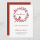 Moderne neue Zuhause für die Weihnachtsankündigungskarte mit einem niedlichen heiligen Kranz mit einem Kardinal-Vogel und einem trendigen, eleganten, dunkelroten Bordeaux-Typografie-Skript.+++++++++++ Einfach mit Ihrem Text, Ihrer neuen Adresse und Unterschrift personalisieren!
