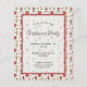 Weißer Hintergrund mit roten Kardinälen, Poinsettia, Getränken. Mit dem Text: Weihnachts-Party geschrieben mit modernen und trendigen großen Handschrift Schrift. Personalisieren Sie Ihre Party-Daten und fügen Sie sie hinzu.
