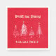 Weihnachts Party Bright and Shining Holiday Dinner Napkins entworfen mit goldfarbenem Text und eleganten weißen Weihnachtsbaumen auf einem fett roten Hintergrund. Der Text enthält: Hell und hell, und Shining, und Feiertag. Um die Feiertage zu Weihnachten Party oder Ihren bevorzugten Text zu ändern, ersetzen Sie einfach den Text in unserer einfachen Vorlage. Die Farben können mit unserem einfachen Color Picker Tool geändert werden.