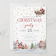Eleganter, wasserfarbener, goldblauer Winterschnee mit Santa Sleigh und Rentiere Weihnachtsfeiertage Party Einladung.