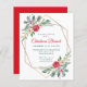Elegante und preisgünstige Weihnachtsbrunch-Einladung mit Aquarellbouquets saisonaler Blumen, Beeren, Heilig und Grün auf einem geometrischen Rahmen aus goldenem Kupfer. Persönliche Gestaltung der Veranstaltung (Brunch, Dinner, Tee, etc.), sowie weitere Veranstaltungsdetails in modernem Rot und Grün sowie Typografie.