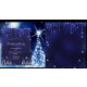 Klassischer dunkelblauer Hintergrund, mit Imitaten Glitzer Staub und Tropfen und weißen Weihnachtsbäumen im Winter als Dekoration. Die blaue Farbe ist ungleichmäßig. Mit dem Text: Weihnachts-Party geschrieben mit modernen und trendigen großen Handschrift Schrift. Personalisieren Sie Ihre Party-Informationen und fügen Sie sie hinzu.
