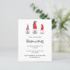 Weiß, mit 3 skandinavischen Gnomen in Rot, Weiß und Grau dekoriert. Eine Party Einladung, die perfekt für ein Party zu Weihnachten ist. Personalisieren Sie Ihre Party-Daten und fügen Sie sie hinzu. Schwarze Buchstaben.